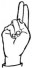На ћирилици написано РЕЉА АРСИКИН састоји се из 11 слова [?]. Исписано ћириличном једноручном азбуком за глувонеме: